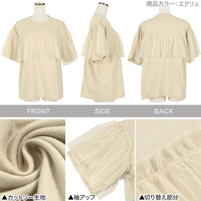 《 セール 》 胸元チュールTシャツ [C5452] レディース トップス 半袖 大人 カジュアル 可愛い デイリー エクリュ 黒 春夏 tシャツ カットソー 春 夏 おしゃれ きれいめ ゆったり チュール フリル 大人可愛い ガーリー