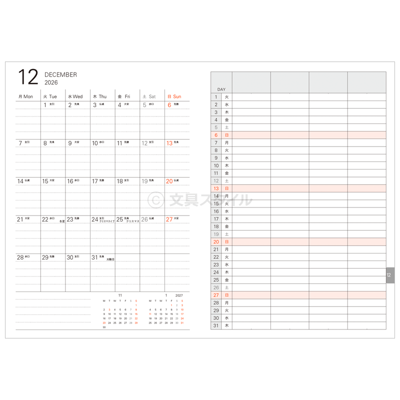 サイズ W128 x H182 x D3mm 仕様 ブロック式マンスリー/片面1ヶ月 縦型リスト式4Plan/片面1ヶ月 16ヶ月分(2022年12月〜2024年3月) イヤープラン付 メーカー 株式会社レイメイ藤井 [NoteRefill][Date][Diary_SizeB6_Start12_Monthly_Block_Monday_4Plan]