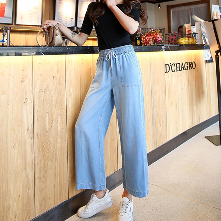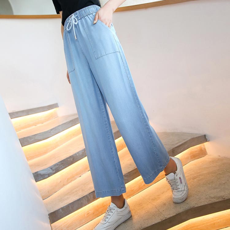 デニムパンツ レディース パンツ ワイドパンツ ジーンズ 九分丈パンツ アンクル丈パンツ ロングパンツ ガウチョパンツ ワイド ウェストゴム シンプル 定番 ストレートデニム カジュアル お洒落 ボトムス 夏新作
