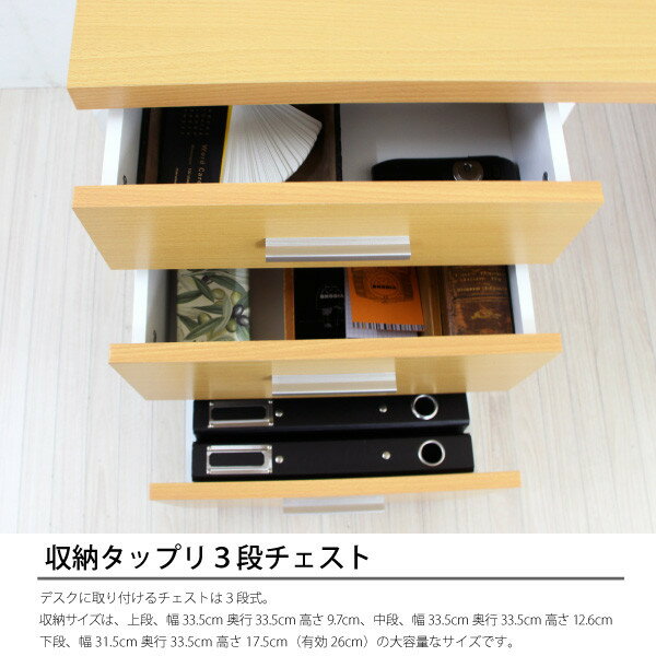 商品詳細サイズデスク/幅120×奥行48.5×高70.5(cm)X2 ラック/幅28.5×奥行48.5×高67.5(cm) X2 3段チェスト/幅40×奥行48.5×高さ67.5(cm)X2材質プリント化粧合板カラーナチュラル&ホワイト生産国インドネシア組み立てについてお客様組み立て送料について■送料 送料無料。